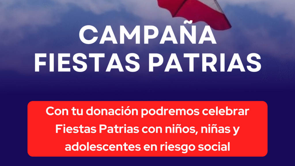 Con tu donación podremos celebrar Fiestas Patrias con niños, niñas y adolescentes en riesgo social: realizaremos juegos tipicos, compartiremos choripanes, bebidas y entregaremos volantines.